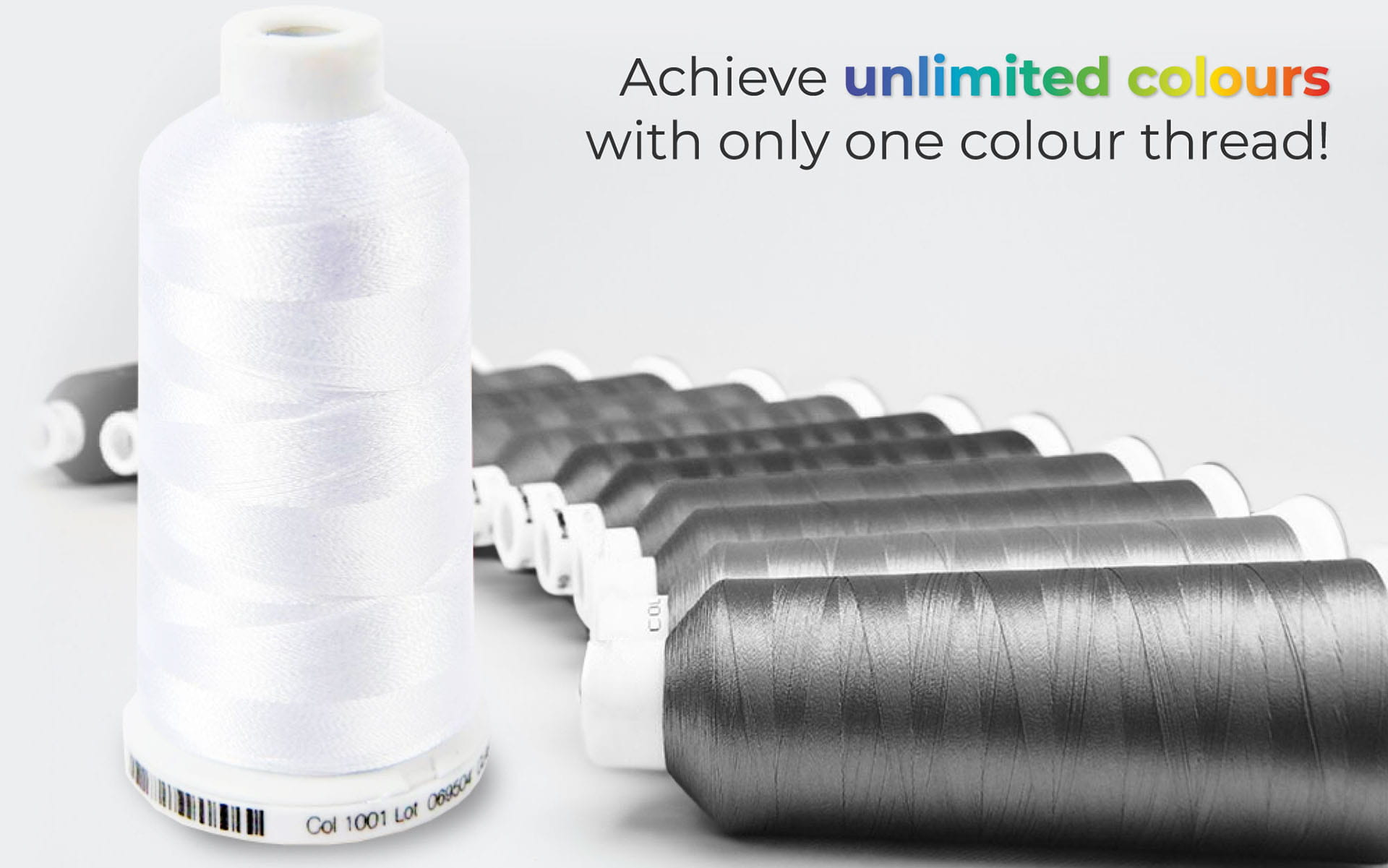 컬러별로 색실이 필요한 전통 컴퓨터 자수와 다르게, 흰색 원사 위에 디지털 잉크젯 프린터로 색상을 입히므로