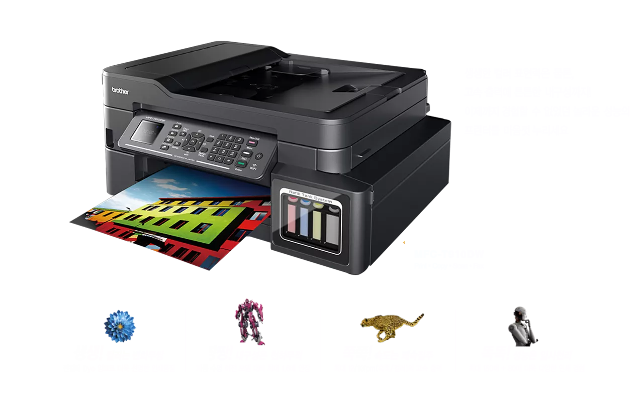 제품 전면부의 투명한 잉크 커버로 업그레이드 된 브라더의 리필 탱크 시스템으로 더욱 쉽고 편리하게 잉크를 충전할 수 있습니다.