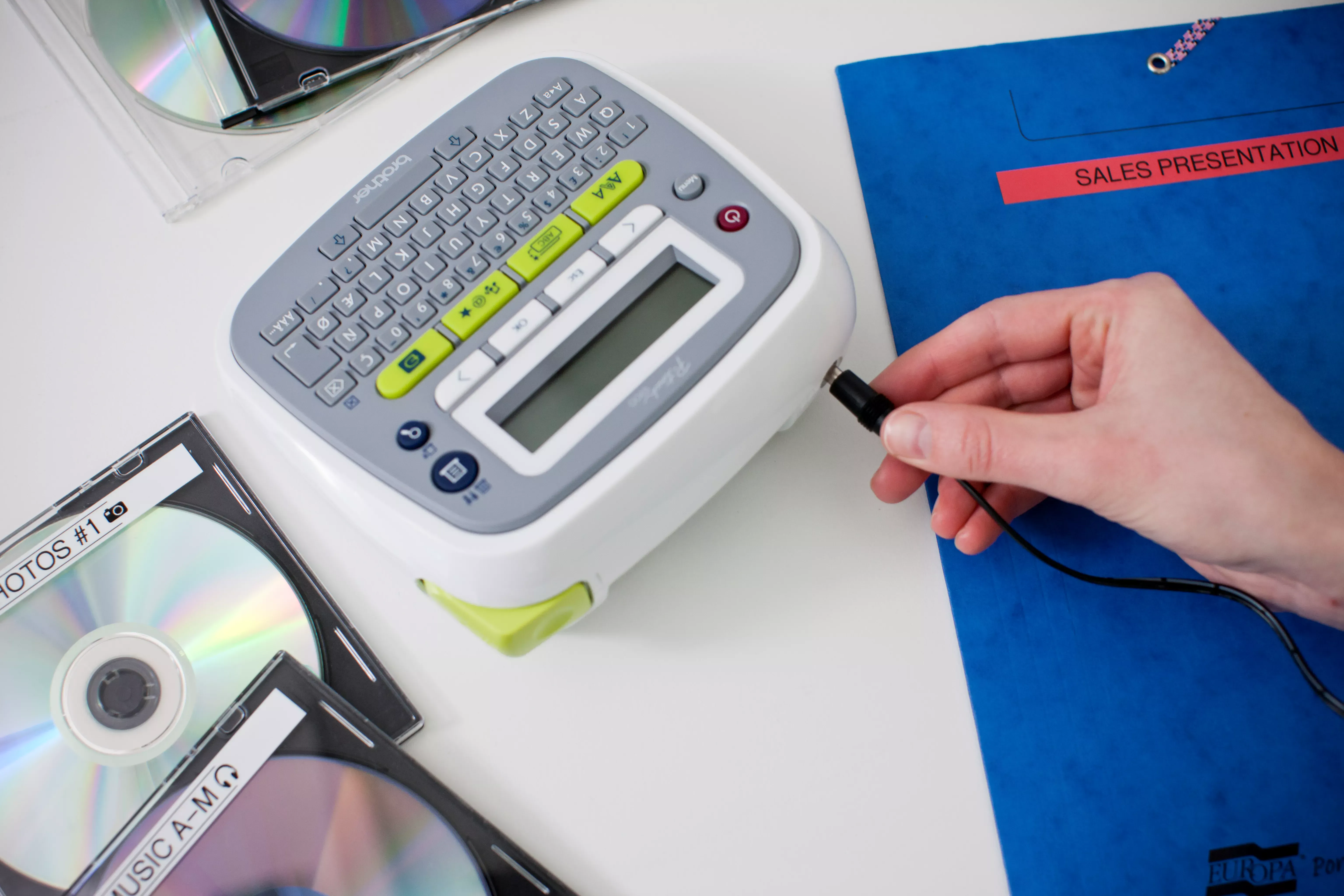 PT-D200LB 라벨 프린터는 매우 콤팩트하여 가정 내에서도 함께 사용하기에 편리합니다.