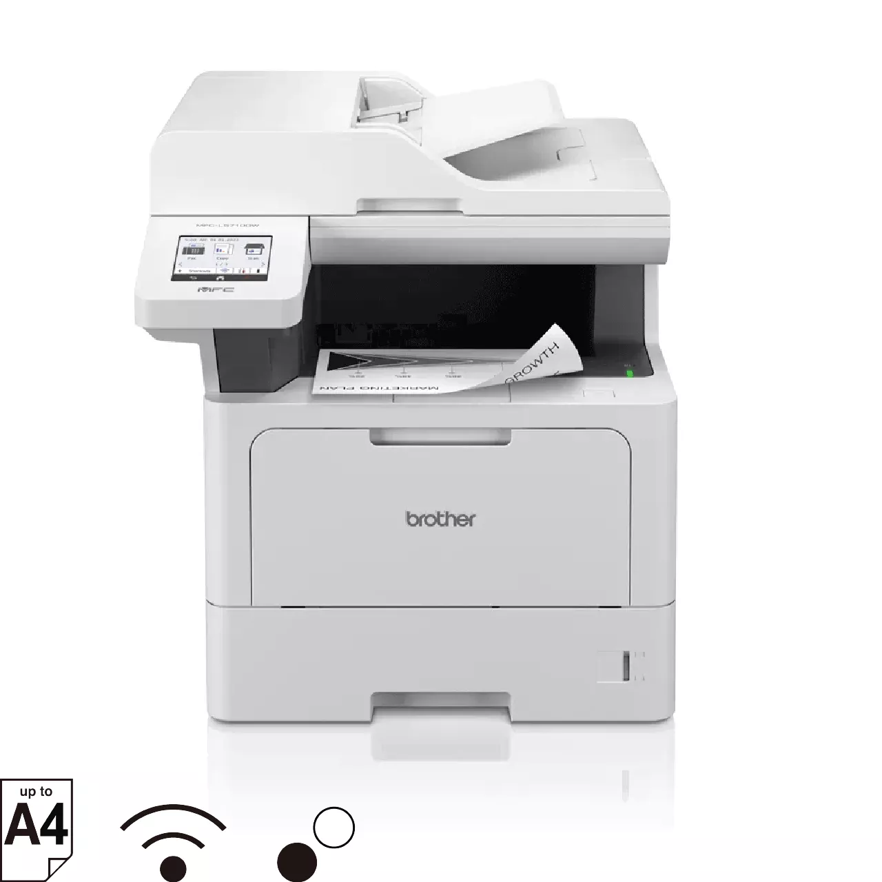 - 자동 양면 인쇄, 50매 자동 급지 장치(ADF), 3.5인치 컬러 LCD 터치스크린